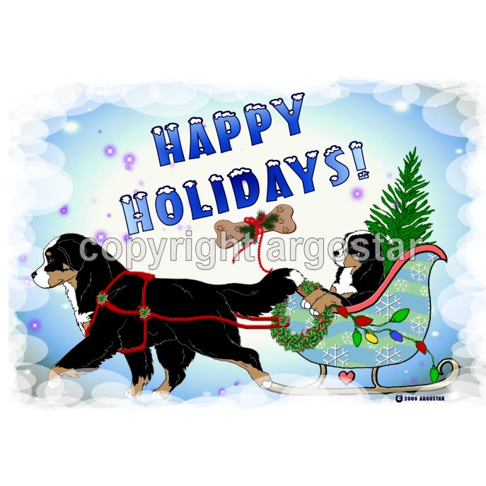 Bernese Mountain Dog happy holidays Christmas cards. Everything that you need for Christmas is in this sleigh.