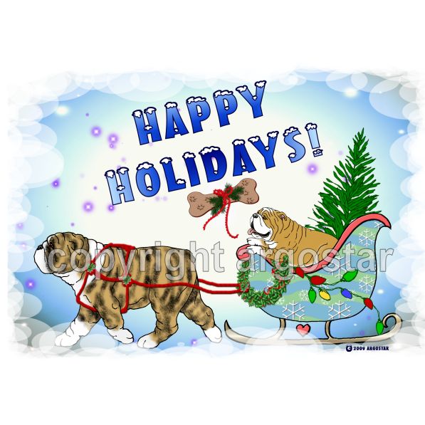 Bulldog happy holidays Christmas cards. Everything that you need for Christmas is in this sleigh.