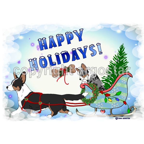 Cardigan Welsh Corgi happy holidays note cards. Everything that you need for Christmas is in this sleigh.