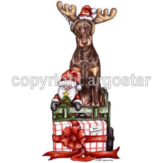 Doberman Pinscher red Christmas puppy Christmas cards.
