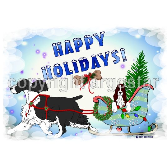 English Springer Spaniel happy holidays Christmas cards. Everything that you need for Christmas is in this sleigh.