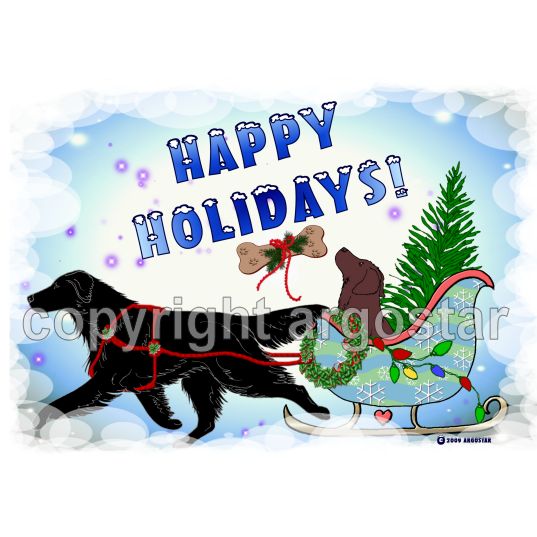 Flat-Coated Retriever happy holidays Christmas cards. Everything that you need for Christmas is in this sleigh.