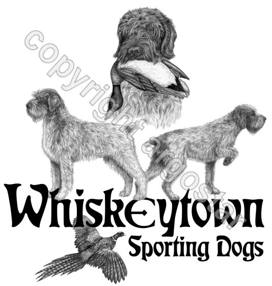 The logo for C-Lion Portuguese Water Dogs was originally created in detailed colored pencil for the client.