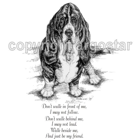 Basset Hound note cards, "Don't walk in front of me, I may not follow. Don't walk behind me, I may not lead. Walk beside me, and just be my friend."