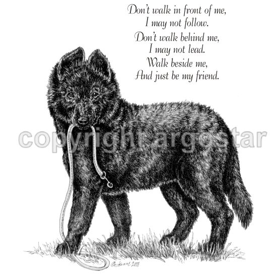 Belgian Sheepdog puppy note cards, "Don't walk in front of me, I may not follow. Don't walk behind me, I may not lead. Walk beside me, and just be my friend."