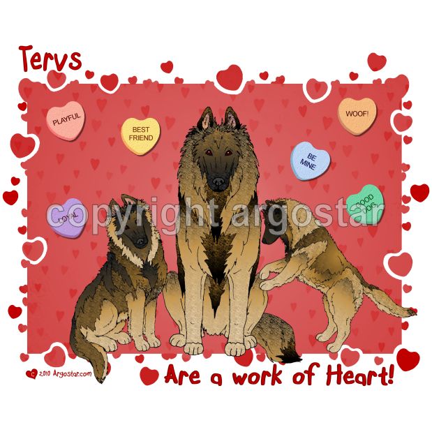 Belgian Tervuren love note cards. Our dogs are a work of heart! Valentine, candy hearts, or all year to show your love of them.