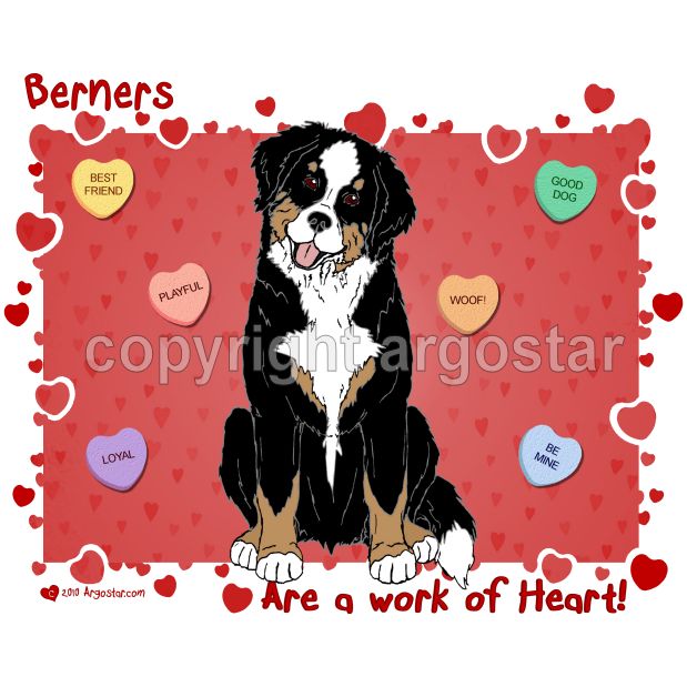 Bernese Mountain Dog love note cards. Our dogs are a work of heart! Valentine, candy hearts, or all year to show your love of them.
