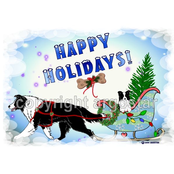 Border Collie happy holidays Christmas cards. Everything that you need for Christmas is in this sleigh.