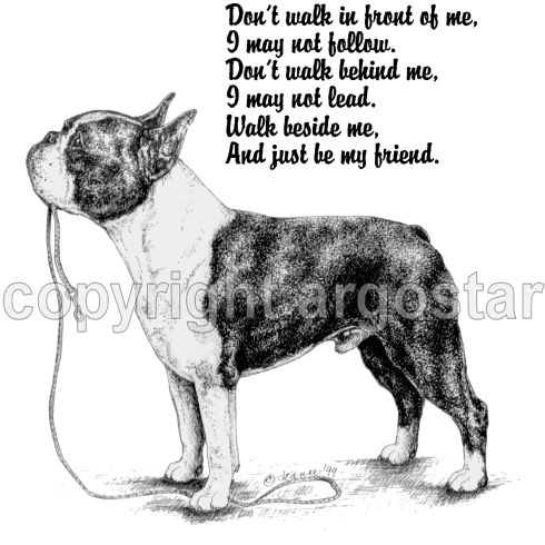 Boston Terrier note cards, "Don't walk in front of me, I may not follow. Don't walk behind me, I may not lead. Walk beside me, and just be my friend."