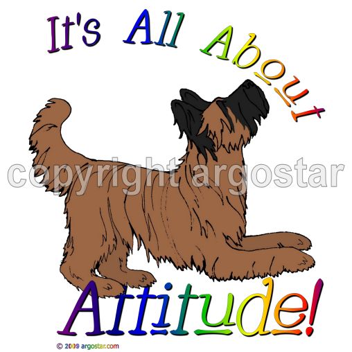 Briard playing note cards, "It's all about attitude!"