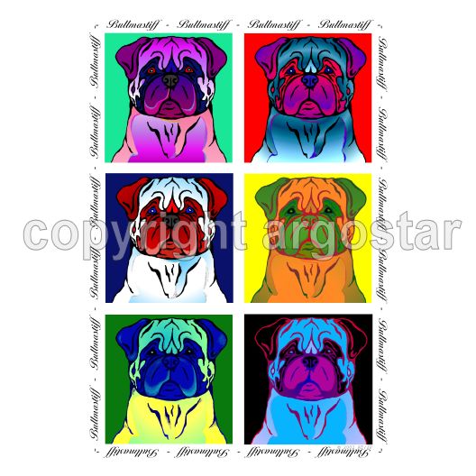 Bullmastiff fun and colorful pop art note cards. 6 panel.