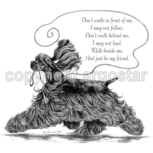 Cocker Spaniel note cards, "Don't walk in front of me, I may not follow.  Don't walk behind me, I may not lead.  Walk beside me, and just be my friend."