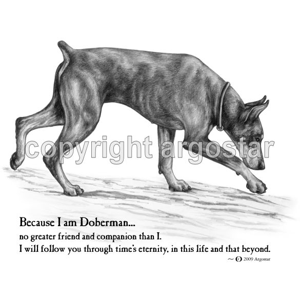 Doberman Pinscher note cards, "Because I am Doberman... no greater friend and companion than I. I will follow you through time's eternity, in this life and that beyond."