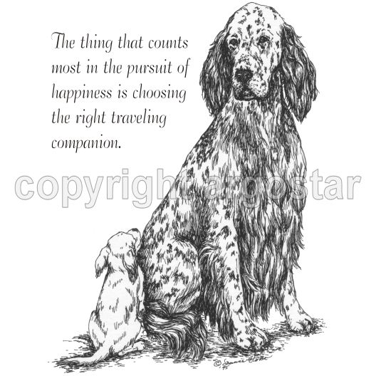 English Setter note cards, "The thing that counts most in pursuit of happiness is choosing the right traveling companion."