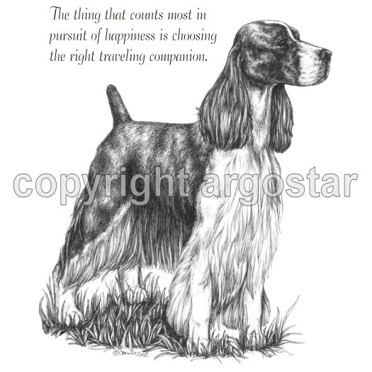 English Springer Spaniel note cards, "The thing that counts most in pursuit of happiness is choosing the right traveling companion."