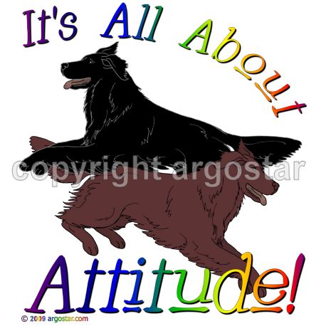 Flat-Coated Retriever playing note cards, "It's all about attitude."
