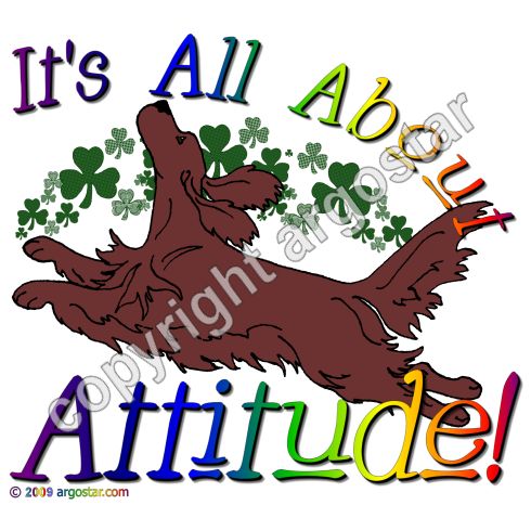 Irish Setter playing with shamrocks note cards, "It's all about attitude!"