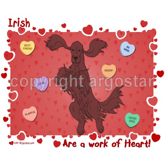Irish Setter love note cards. Our dogs are a work of heart! Valentine, candy hearts, or all year to show your love of them.