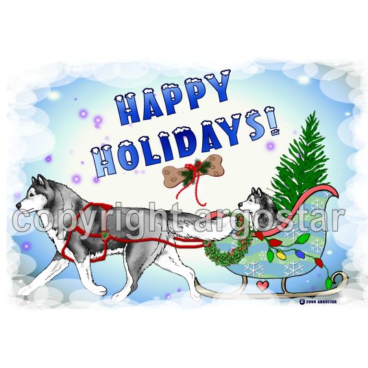Christmas Cards - Siberian Husky Christmas Sleigh Ride