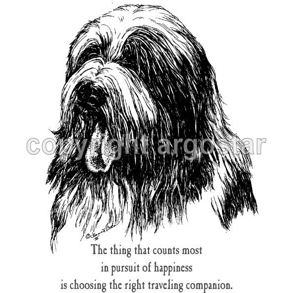 Bearded Collie note cards, "The thing that counts most in pursuit of happiness is choosing the right traveling companion."